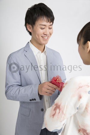 女性にプレゼントを渡す男性 の画像素材 イラスト素材ならイメージナビ